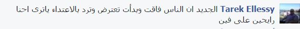 Tarek Ellessy- : الجديد إن الناس فاقت وبدأت تعترض وترد بالاعتداء ياترى احنا رايحين على فين.