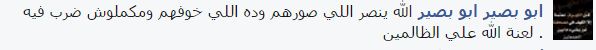 – أبو بصير: الله ينصر اللي صورهم وده اللي خوفهم ومكملوش ضرب فيه،  لعنة الله علي الظالمين.