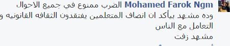 Mohamed Farok Ngm- : الضرب ممنوع في جميع الأحوال، وده مشهد بيأكد إن انصاف المتعلمين يفتقدون الثقافة القانونية والتعامل مع الناس.. مشهد زفت.