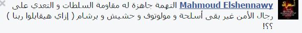 Mahmoud Elshennawy- : التهمة جاهزة له مقاومة السلطات والتعدي على رجال الأمن غير بقى أسلحة ومولوتوف وحشيش وبرشام (إزاي هيقابلوا ربنا) ؟؟!.