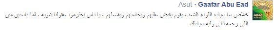 Gaafar Abu Ead –: خلاص ياسيادة اللواء الشعب يقوم يقبض عليهم ويحاسبهم ويفصلهم، يا ناس احترموا عقولنا شوية، لما فاسدين مين اللي رجعهم تاني وليه سيادتك؟
