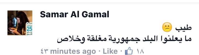 وقالت سمر الجمال: “طيب ما يعلنوا البلد جمهورية مغلقة وخلاص”.