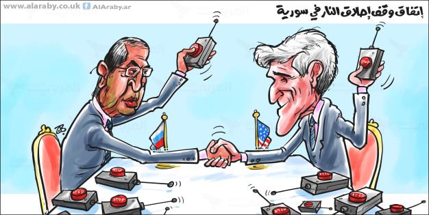 فنشر موقع “العربي الجديد” رسما ساخرا من قرار وقف إطلاق النار في سوريا: