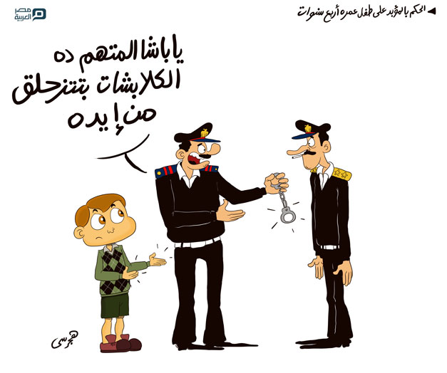 أما عن إصدار حكم بالمؤبد على طفل مصري، عمره أربع سنوات فنشر موقع “مصر العربية” هذا الرسم: