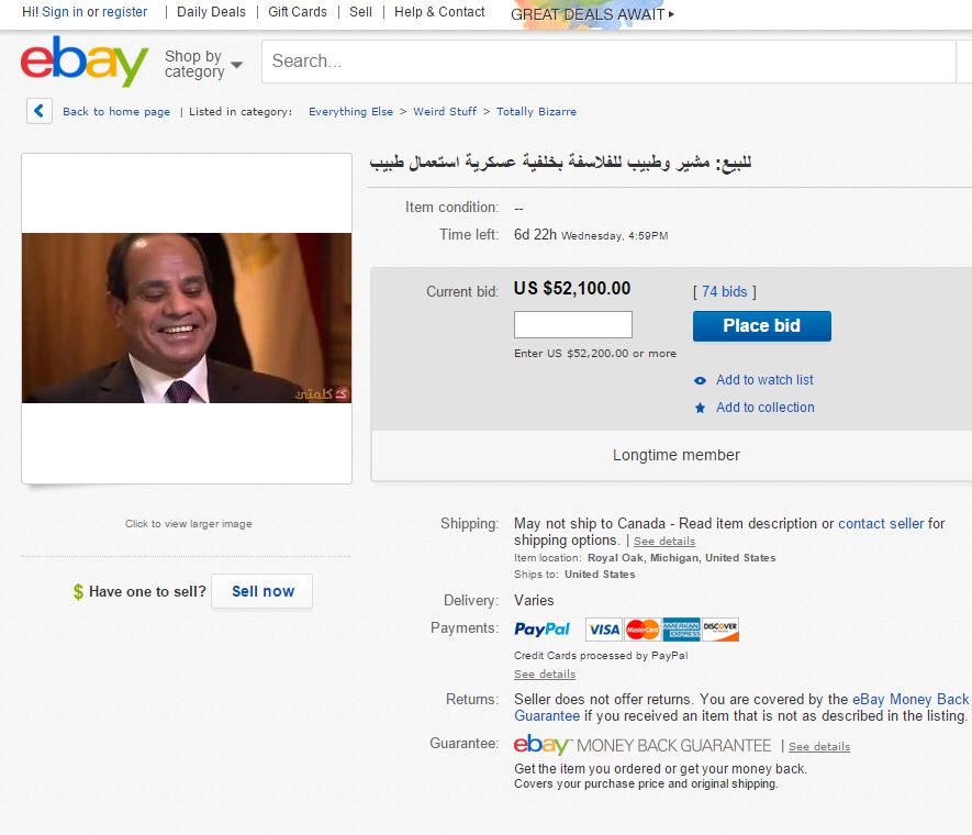 بالصور.. السيسي معروض للبيع على “eBay” والمزاد يصل لـ52 ألف دولار