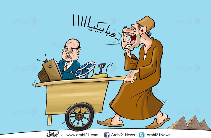 وأما عن عرض السيسي بيع نفسه من أجل مصر فسخر موقع “عربي 21” بهذا الرسم: