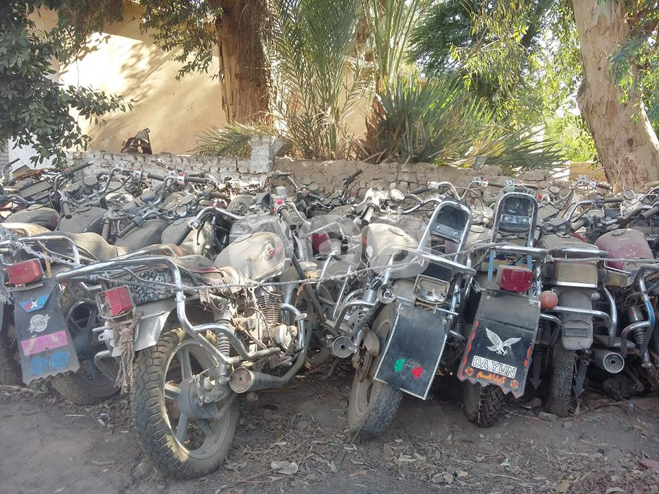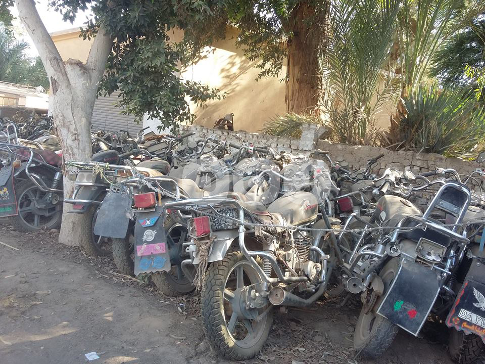 وتجولت عدسة شبكة “رصد” داخل وحدة مرور إسنا والتقطت عدساتها السيارات والدراجات البخارية التي يتم مصادرتها بعد ضبطها خلال الحملات الأمنية التي تشنها الإدارة العامة للمرور، وإيداعها في “مقبرة الدراجات البخارية”، تلك التي تراكم عليها التراب وانهالت عليها أمطار الشتاء حتى أصبحت متهالكة لوجودها عدة أشهر وربما أعوام في هذا المكان.