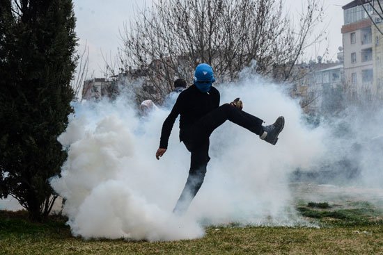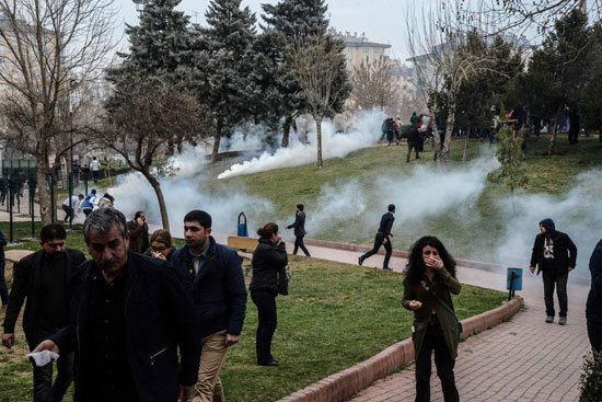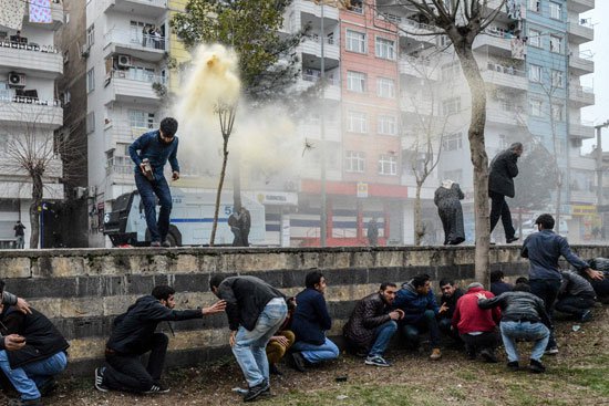 بالصور.. الشرطة التركية تفرّق تظاهرات المحتجين الأكراد بقنابل الغاز