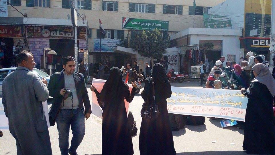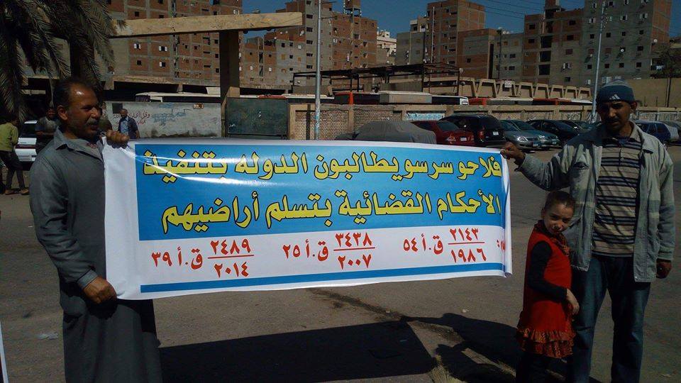 نظم فلاحو قرية سرسو بمركز طلخا بمحافظة الدقهلية اليوم الأحد، وقفة احتجاجية أمام مديرية الإصلاح الزراعي بمدينة المنصورة في محافظة الدقهلية، للمطالبة بتنفيذ الأحكام القضائية الصادرة لصالحهم من مجلس الدولة بتمكينهم من أراضيهم، والتي يرفض الإصلاح الزراعي تنفيذها منذ 2007 بعد تمكين أحد رجال الأعمال منها.