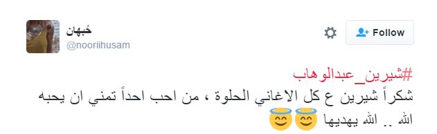 nooriihusam: “شكرًا شيرين على كل الأغاني الحلوة، من أحب أحدًا تمنى أن يحبه الله.. الله يهديها”.