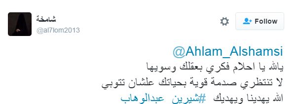 Ahlam Alshamsi: “يا الله يا أحلام فكري بعقلك وسويها.. لا تنتظري صدمة قوية بحياتك علشان تتوبي.. الله يهدينا ويهديك”.