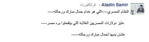 وعلق “علاء الدين سمير” قائلا: “النظام المصري اللي هو خدام جمال مبارك ورجالته، عايز دولارات المصريين الغلابة اللي بيتفحتوا بره مصر، عشان يديها لجمال مبارك ورجالته”.