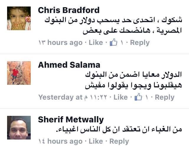 وعلق عدد من المصريين المقيمين بالخارج على هذا الأمر على صفحاتهم على موقع “فيس بوك”؛ حيث قال “كريم أحمد”: “ده أنا باحول 200 دولار بناخدهم بعد خناق، إمال بقى لو حولت ألف ولا ألفين، البنك هياخدهم ويهرب على سويسرا”.