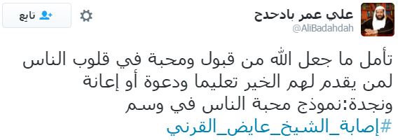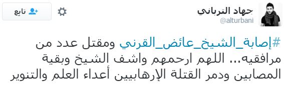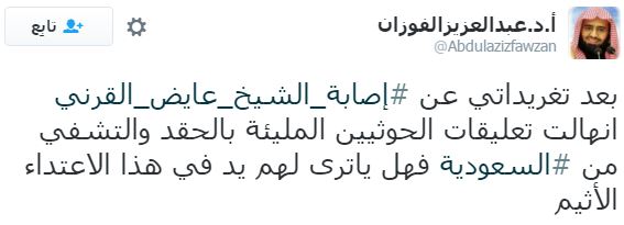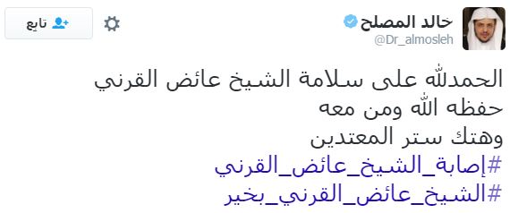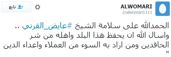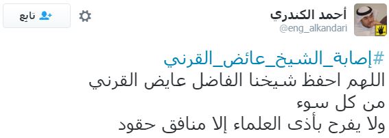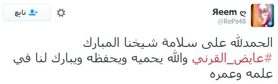 وجاءت تعليقات الرواد على هاشتاجات عديدة مثل، “#عائض_القرني، #إصابة_الشيخ_عائض_القرني، #محاولة_اغتيال_الشيخ_عائض_القرني“، كالآتي،