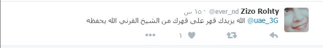 وعلق حساب يحمل اسم “زيزو”: “الله يزيدك قهر على قهرك من الشيخ القرني الله يحفظه”.