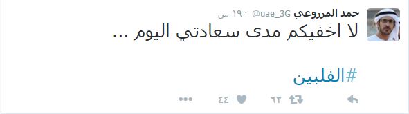 وكان “المزروعي” قد أكد -في عدة تغريدات له على حسابه بموقع التدوين المصغر “تويتر”- على فرحته بإصابة القرني، واصفًا إياه بـ”الشيطان”، وهو ما أثار حفيظة السعوديين، ليتحول الأمر إلى حرب تغريدات بين الطرفين.