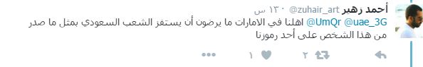 ورد أحمد زهير بقوله: “أهلنا في الإمارات ما يرضون أن يستفز الشعب السعودي بمثل ما صدر من هذا الشخص على أحد رموزنا”.