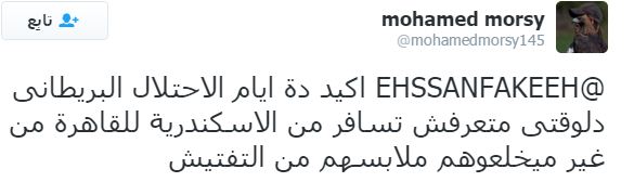 mohamed morsy: أكيد ده أيام الاحتلال البريطاني دلوقتي متعرفش تسافر من الإسكندرية للقاهرة من غير ميخلعوهم ملابسهم من التفتيش