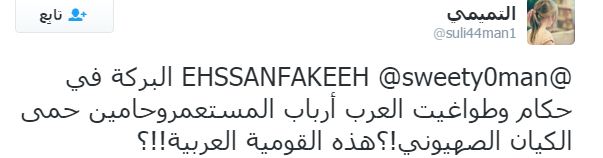 التميمي: البركة في حكام وطواغيت العرب أرباب المستعمر وحامين حمى الكيان الصهيوني!؟ هذه القومية العربية!!؟