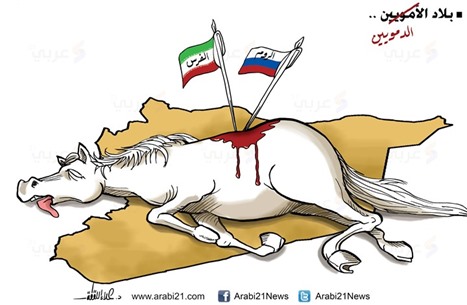 وعن الصراع الروسي الإيراني في سوريا نشر موقع “عربي 21” هذا الرسم: