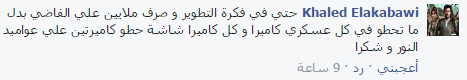 – khaled: “حتى في فكرة التطوير وصرف ملايين على الفاضي، بدل ما تحطو كاميرا مع كل عسكري حطو كاميرتين على عواميد النور”.