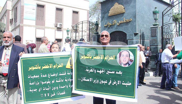 نظم أهالي منطقة الحزام الأخضر بالسادس من أكتوبر وقفة احتجاجية أمام مجلس النواب، للمطالبة بإعادة أراضيهم التي استولت عليها الدولة وهجرتهم منها.