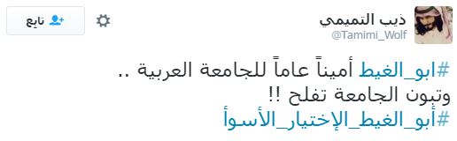 ودشن عدد من الرواد هاشتاجا تحت اسم “#أبو_الغيط_الإختيار_الأسوأ”، وجاءت التعليقات في سياق انتقاد مواقف سابقة للوزير المصري في عهد الرئيس المخلوع محمد سحني مبارك، كما علق آخر “تعسًا لأمة هذه جامعتها”، وجاءت التعليقات كالآتي،