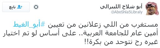 عقِب إعلان جامعة الدول العربية، اختيارها وزير الخارجية المصري السابق أحمد أبو الغيط في منصب الأمين العام لجامعة الدول العربية خلفا لنبيل العربي، شن مغردون هجومًا واسعًا على الجامعة، رافضين هذه الاختيار.