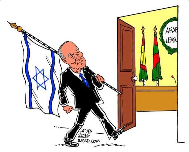 رسم لاتوف أبو الغيط وهو يدخل للجامعة العربية حاملًا علم “إسرائيل”، في إشارة إلى أنه سيخدم مصالح الاحتلال “الإسرائيلي” .