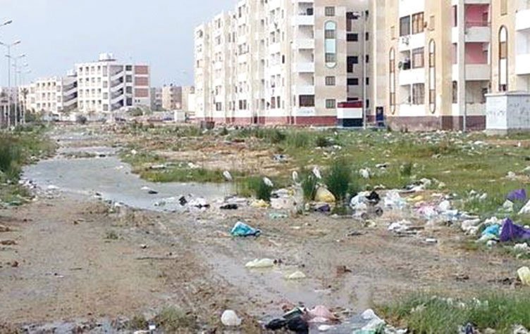 كما أن آلاف الوحدات السكنية بمشاريع إسكان الشباب عرضة للمياه الجوفية والمجاري، والصورة التالية توضح ما تتعرض له مدينة المستقبل بالإسماعيلية، والتي أصبحت مهددة بالانهيار؛ بسبب ارتفاع المياه الجوفية والصرف الصحي، الذي حول الشوارع إلى بركة المياه الراكدة، ولا يوجد هناك خدمات نظافة.