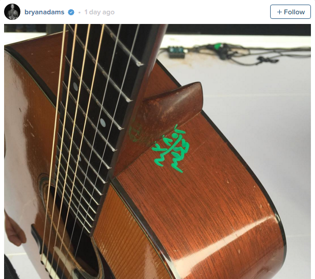 وكتب آدامز على إنستجرام قائلا: “نقش جمارك المطار على جيتار مارتن دي-١٨ المصنوع عام ١٩٥٧ الخاص بي”.