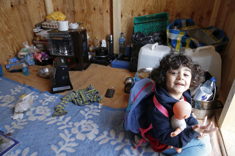 3- تينا طفلة كردية من العراق تبلغ من العمر 3 سنوات، تعيش في مخيم خشبي بالقرب من شمال فرنسا، تلبس حقيبة المدرسة، لكنها لن تذهب إليها، هي فقط تتخيل كيف تكون حياتها في بلد آمن.