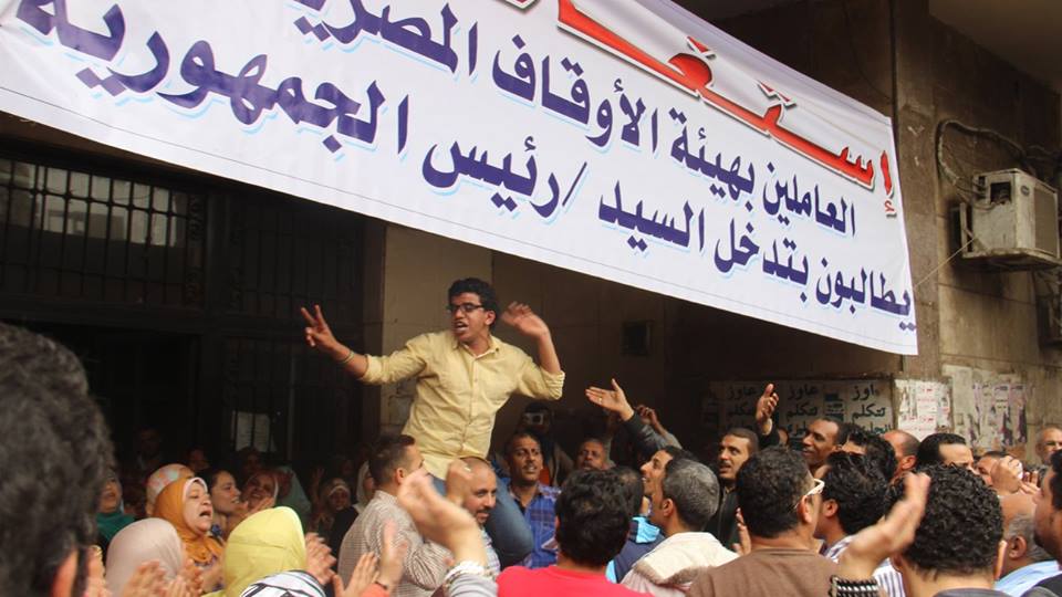 استكمل اليوم عدد من موظفي هيئة الأوقاف اعتصامهم بمقر الهيئة في ميدان الدقي وإضرابهم عن العمل، والذي استمر قرابة أسبوع؛ للمطالبة برحيل اللواء علي الفرماوي، رئيس الهيئة، واعتراضا على إحالة 12 موظفا من بينهم إلى النيابة العامة بتهمة تعطيل العمل الحكومي.