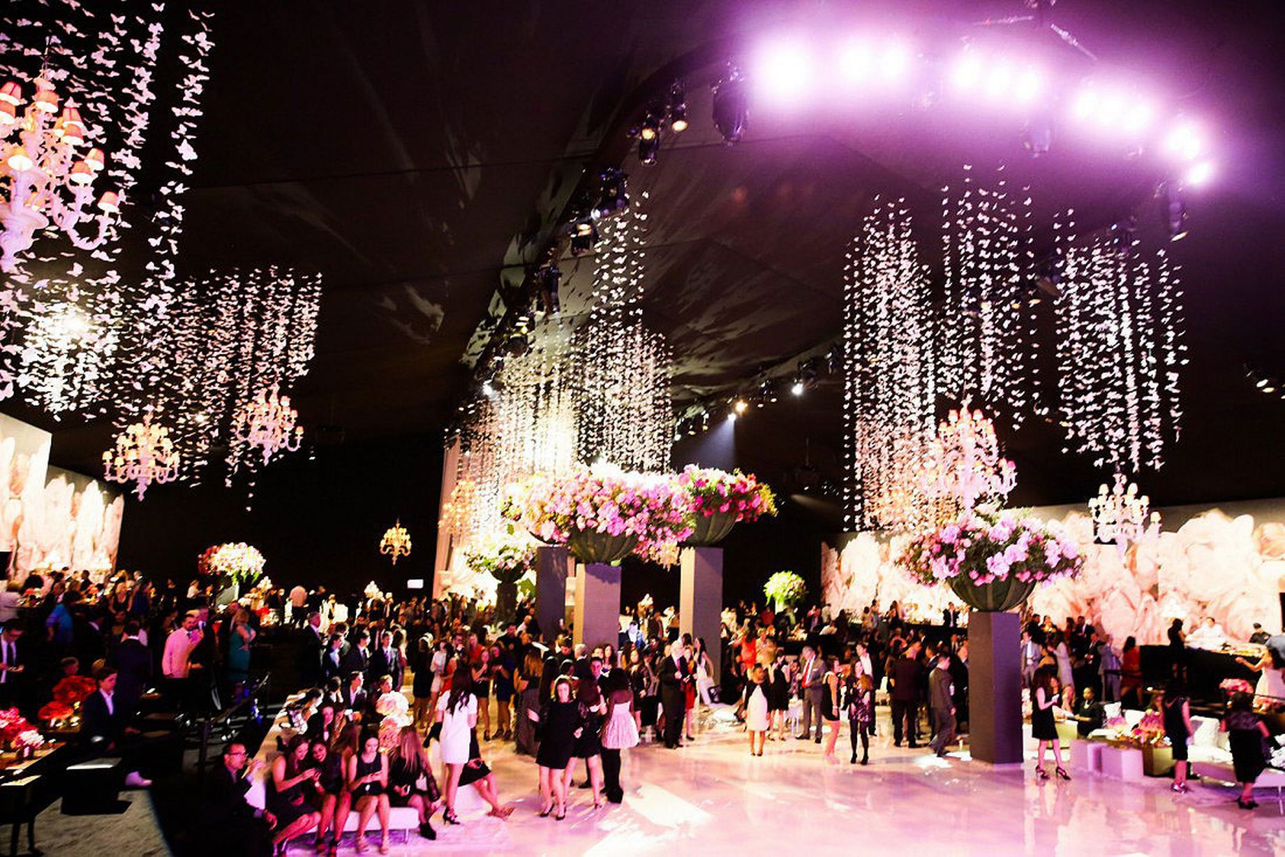 وأقيم الحفل في مكان تقدر مساحته بـ55 ألف قدم مربع في سان أنطونيو، وتم تزيينه بأشجار كرز بطول قدره 30 قدما، وتم تصميم جدران من الورد ونوافير وغرفة حديقة وقاعة رقصت فيها فراشات مدلاة من السقف.