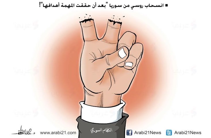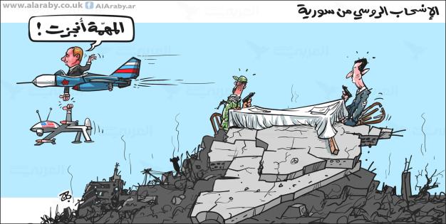 فسخر موقع “العربي الجديد” من الانسحاب الروسي من سوريا بالرسم التالي: