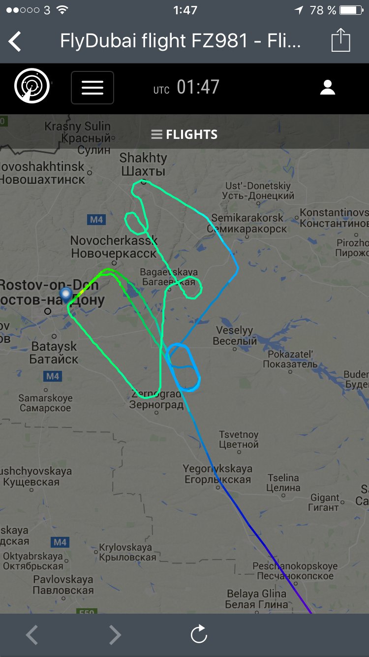 وتم نشر صور لمسار الطائرة من دبي إلى روسيا