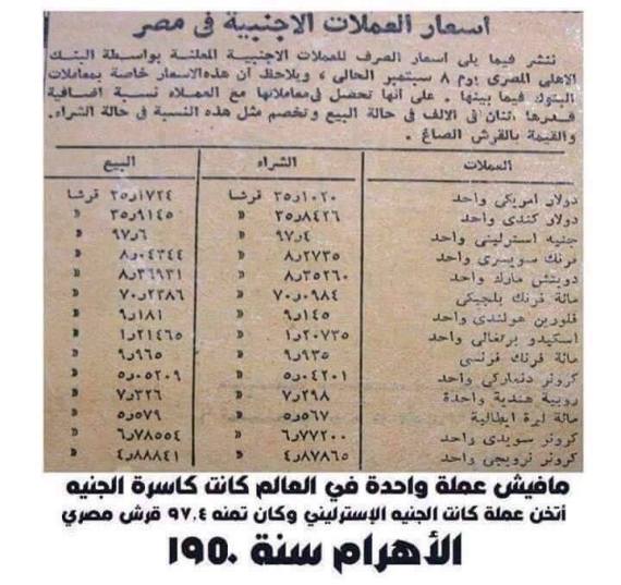 وكالعادة خرج المصريون يسخرون من تراجع قيمة الجنيه مقابل الدولار، من خلال تبادلهم لعدد من الصور على مواقع التواصل الاجتماعي التي توضح لقيمة الجنيه المصري قديما، حيث كانت أعلى من العملات المنافسة.