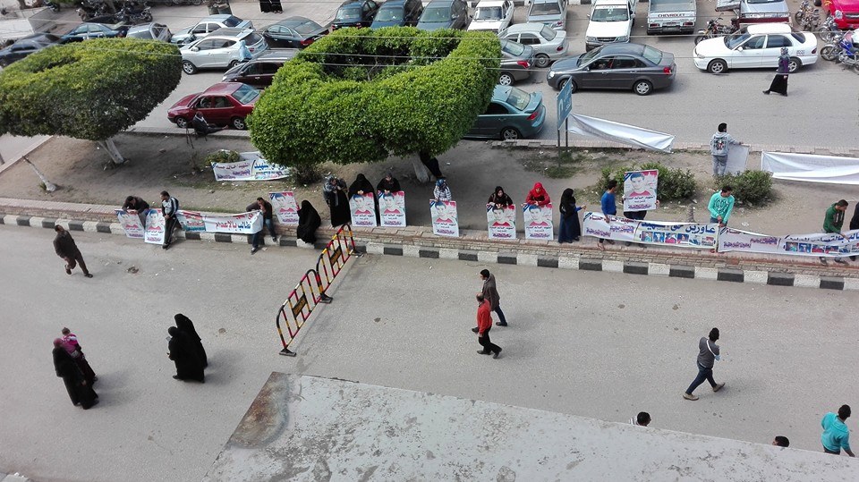 نظم الأهالي وقفة احتجاجية، أمام محكمة كفر الشيخ، أثناء نظر محاكمة أمين الشرطة المتهم بقتل خالد أبو دية، في ديسمبر الماضي.