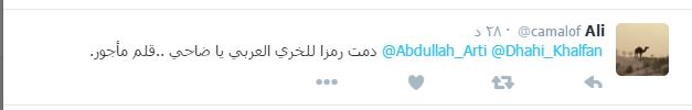 وتوالت التعليقات الغاضبة من من تغريدة خلفان، فقال علي : ” دمت رمزا للخري العربي يا ضاحي ..قلم مأجور”.