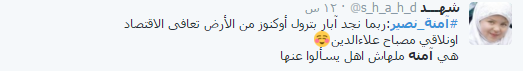 وقالت آمنة في تصريحات صحفية لها، أمس: “ربما يكتشف المصريون آبار بترول أو كنوزا من الأرض، تظهر لنا في هذه الأيام تعافي اقتصادنا”، مضيفة: “أتمنى أن نتعافى في أمورنا الاقتصادية، وأن تكون العافية قريبة بفضل من الله”.