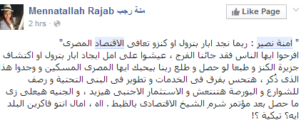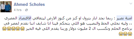 ويرى مراقبون في تصريحات “آمنة” إحالة من دنيا الواقع إلى عالم الأمنيات، وتوجيهًا لأنظار المصريين من مشكلاتهم الاقتصادية الطاحنة، إلى التعلق بأمل موهوم بعيدًا عن سواعدهم، مؤكدين أن المشكلة المصرية ليست في الاكتشافات، وإنما في سوء الإدارة، فضلاً عن الفساد، وكلاهما يضيع على الشعب المصري الاستفادة من ثرواته وموارده.