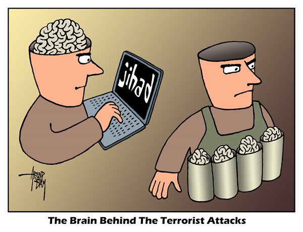 ونشر موقع “بولتيكال كارتونز” هذا الرسم ساخرا من الإرهاب العالمي: