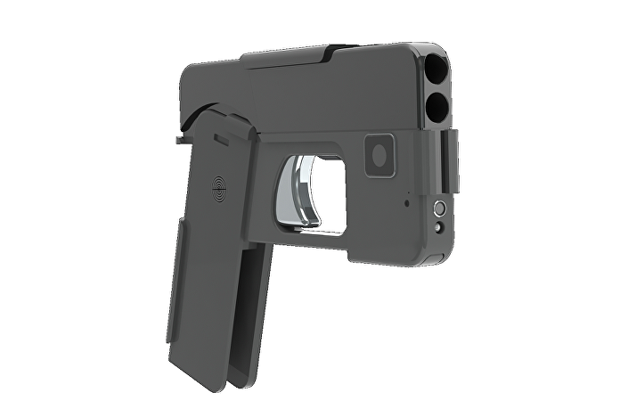 ويشبه المسدس بشكله وحجمه ووزنه الهاتف الذكي، لكن بفضل التصميم القابل للطي فهو يتحول إلى سلاح بسرعة.