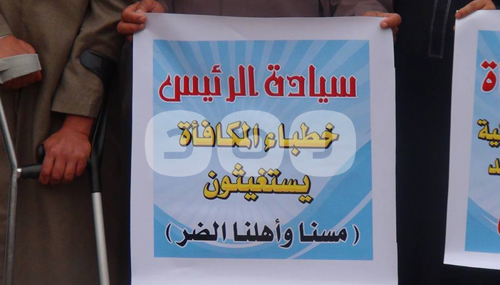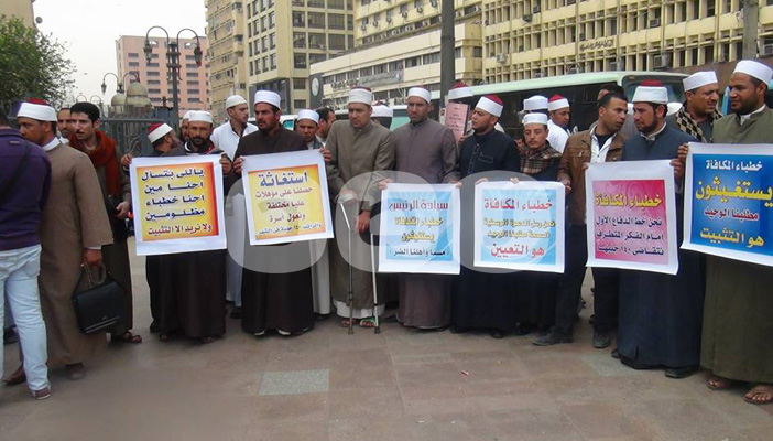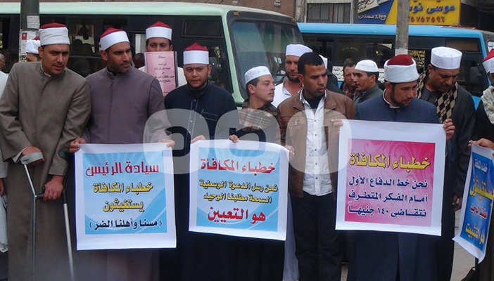 ورفع الخطباء المحتجون لافتات مكتوب عليها “خطباء المكافأة يستغيثون”، و”مطلبنا الوحيد هو التثبيت”، و”ياللي بتسال احنا مين احنا خطباء مظلومين”، و”خطباء المكافأة… نحن خط الدفاع أمام الفكر المتطرف”.