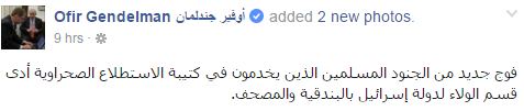 وأثارت عدد من الصور التي نشرها المتحدث الرسمى باسم الحكومة الإسرائيلية للإعلام العربي “أوفير جندلمان” على صفحته الرسمية على موقع التواصل الاجتماعي ” فيس بوك” جدلا واسعا، حيث زعم أنها لجنود مسلمين انضموا مؤخرا إلى الجيش الإسرائيلي.