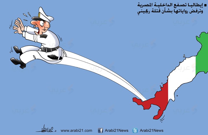 أما بشأن فضيحة وزارة الداخلية المصرية مقتل الإيطالي “جوليو ريجيني” فنشر موقع “عربي 21” هذا الرسم: