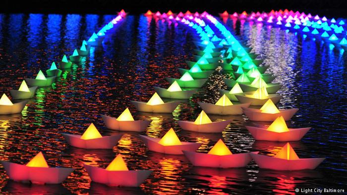 2 – تتحول مدينة بالتيمور في ولاية مريلاند الأميركية في الفترة من 28 مارس حتى 3 من شهر أبريل 2016 إلى مدينة للأضواء، وتشع جنبات مينائها بشتى أنواع فنون الإضاءة وتُقَدم عروضا مبتكرة.