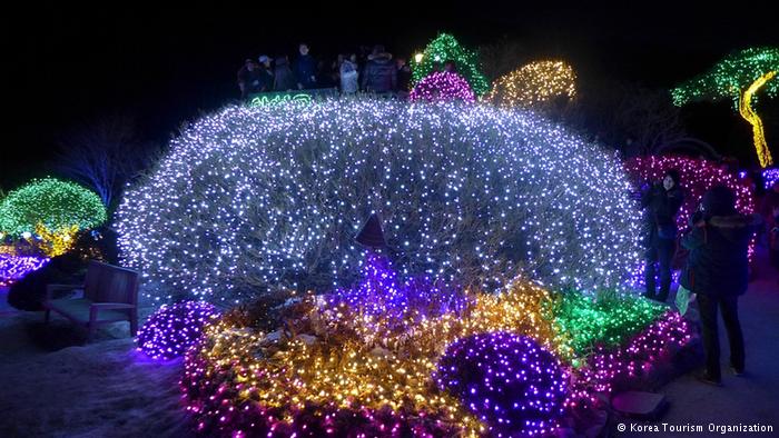 3 – ملايين الأضواء ذات الأداء عالي الجودة والتباين الصارخ في الألوان ستُحَول أشجار وتماثيل الحيوانات في حدائق “أكيم غويو آربوريتوم” المدارية في عاصمة كوريا الجنوبية سيول إلى ما يشبه الغابة الخيالية.