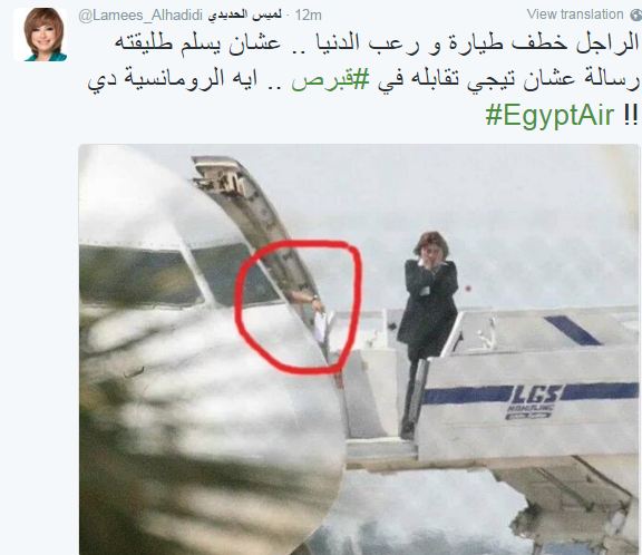 وقالت “الحديدي”، في تغريدة لها عبر حسابها الشخصي بموقع التواصل الاجتماعي “تويتر”: “الراجل خطف طيارة ورعب الدنيا.. عشان يسلم طليقته رسالة عشان تيجي تقابله في # قبرص.. إيه الرومانسية دي”.