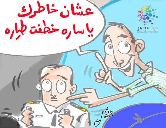 ونشرت صحيفة “الاتحاد” الإماراتية، كاريكاتيرا، للرسام والكاتب شريف عرفة، يسخر فيه من “سيف الدين مصطفى” خاطف الطائرة لمقابلة طليقته القبرصية.